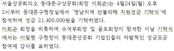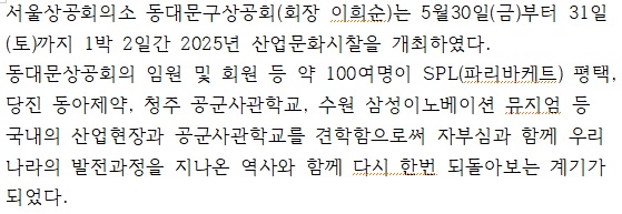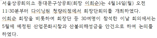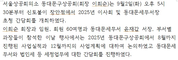 동대문구를 방문하여 우호 교류 의향서 체결 및 동대문구상공회 임원과 폭 넓은 환담을 하였다.